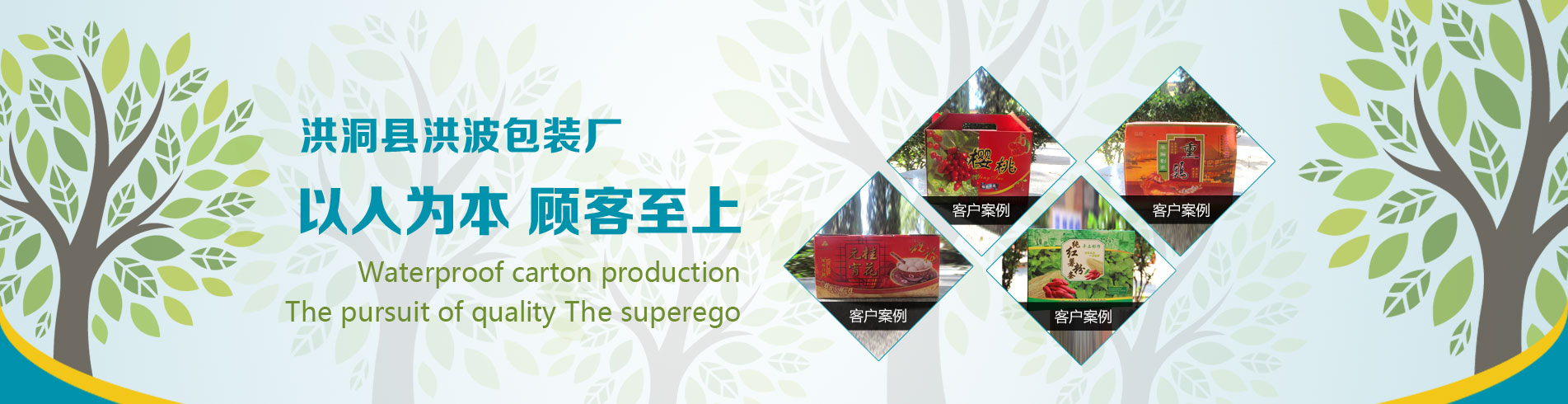 洪洞县洪波包装厂(原洪洞县洪武纸箱厂),系原洪洞县武装部生产基地,成立于一九九二年,座落于临汾市洪洞县城南霍侯一级路50公里处东营村口,处于省、市交通要道(大运高速临汾北口北4公里),交通极其便利。我厂曾先后荣获省市县级“先进企业”、“质量信得过单位”等称号,是一个集包装设计、研发、生产、销售为一体的综合性企业,也是临汾市一家具有生产出口商品包装资质的企业。现有固定资产600余万元,职工二十余名,厂区占地面积二千平方米。拥有各类现代化纸箱、纸盒生产设备:B型瓦楞机、E型瓦楞机、海德堡四色彩印机(分厂)、220型三色分切开槽水墨印刷机、BF型薄刀分切压线机、三台大(1400型)、中型平压压痕切线机、激光电脑雕刻机等。年生产高、中、低档纸箱、纸盒500万平米,并承揽各种手提盒、画报、标签等彩印宣传资料。